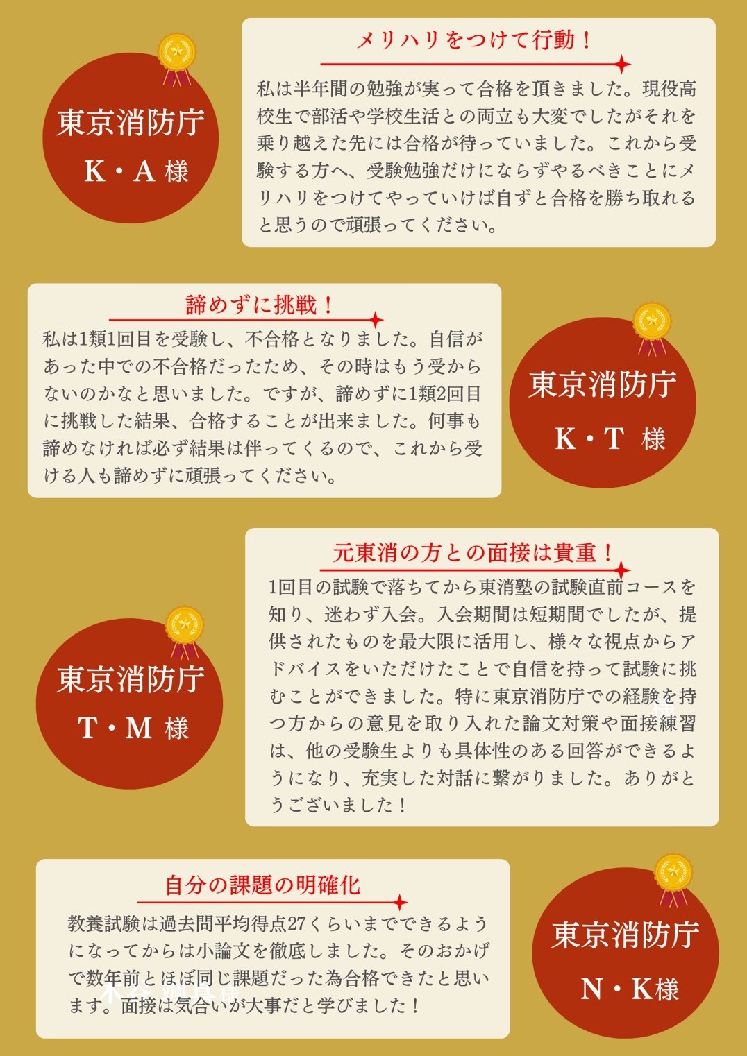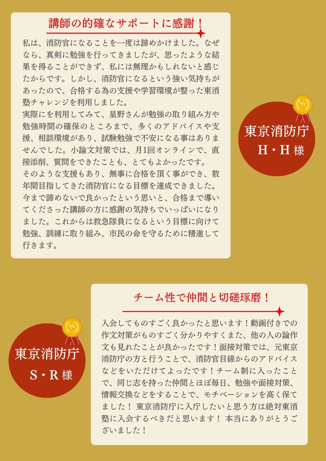 東京消防庁合格者の声