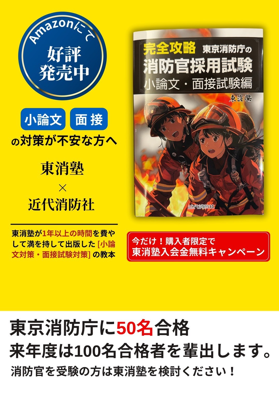 東消塾では、令和6年度11月13日に東京消防庁の消防官採用試験に向けた小論文・面接試験対策本を発売しました。