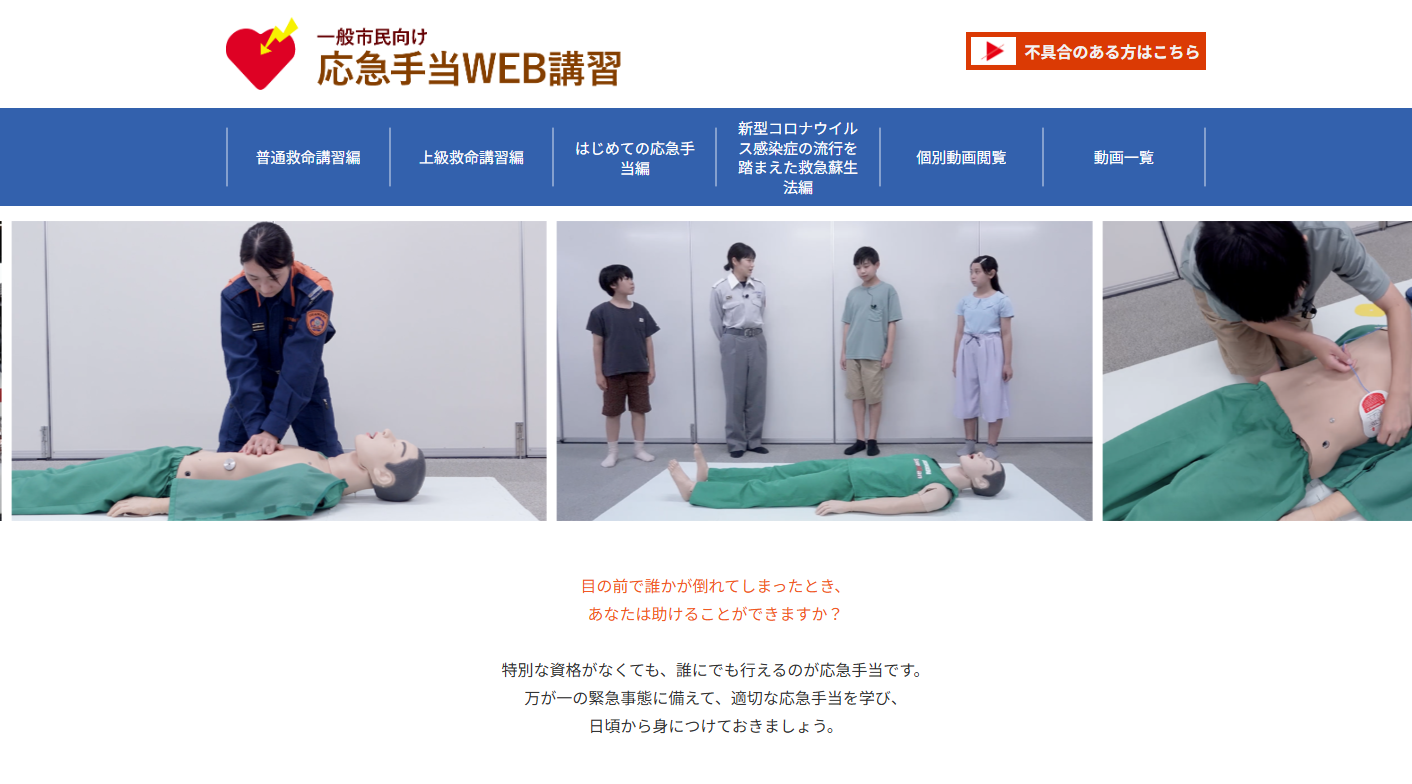忙しくてどうしても行けない方は、総務省消防庁がWEBでも講習を行っています。