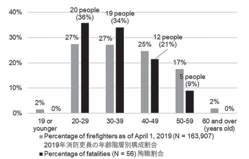 現場の最前線に立つのが体力や筋力のある若手消防士なのも、若手消防士の殉職率が高い要因だと考えられます。