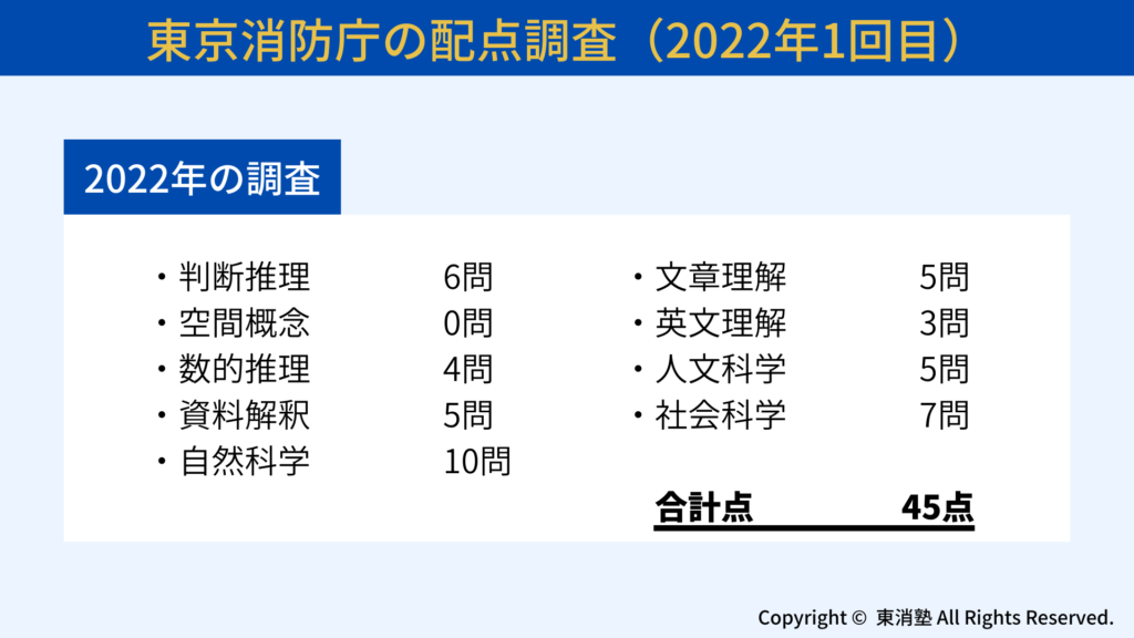 東京消防庁採用試験の科目別出題数を紹介